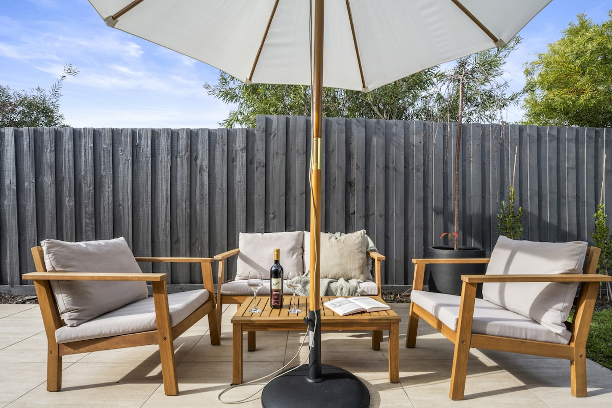Located In Rye on the Mornington Peninsula. The Hamptons in Rye - Provincial Studio Apartment is like your own private oasis! Set amongst 1.5 arces, the Studio is separate from the main house with its own private Entrance & Courtyard along with disable access. The added bonus is the famous Peninsula Hot Springs & the new Alba Hot Springs are only 3 minutes drive away, along with the front and back beaches. Not to forget the popular golf courses and tremendous wineries for starters.
