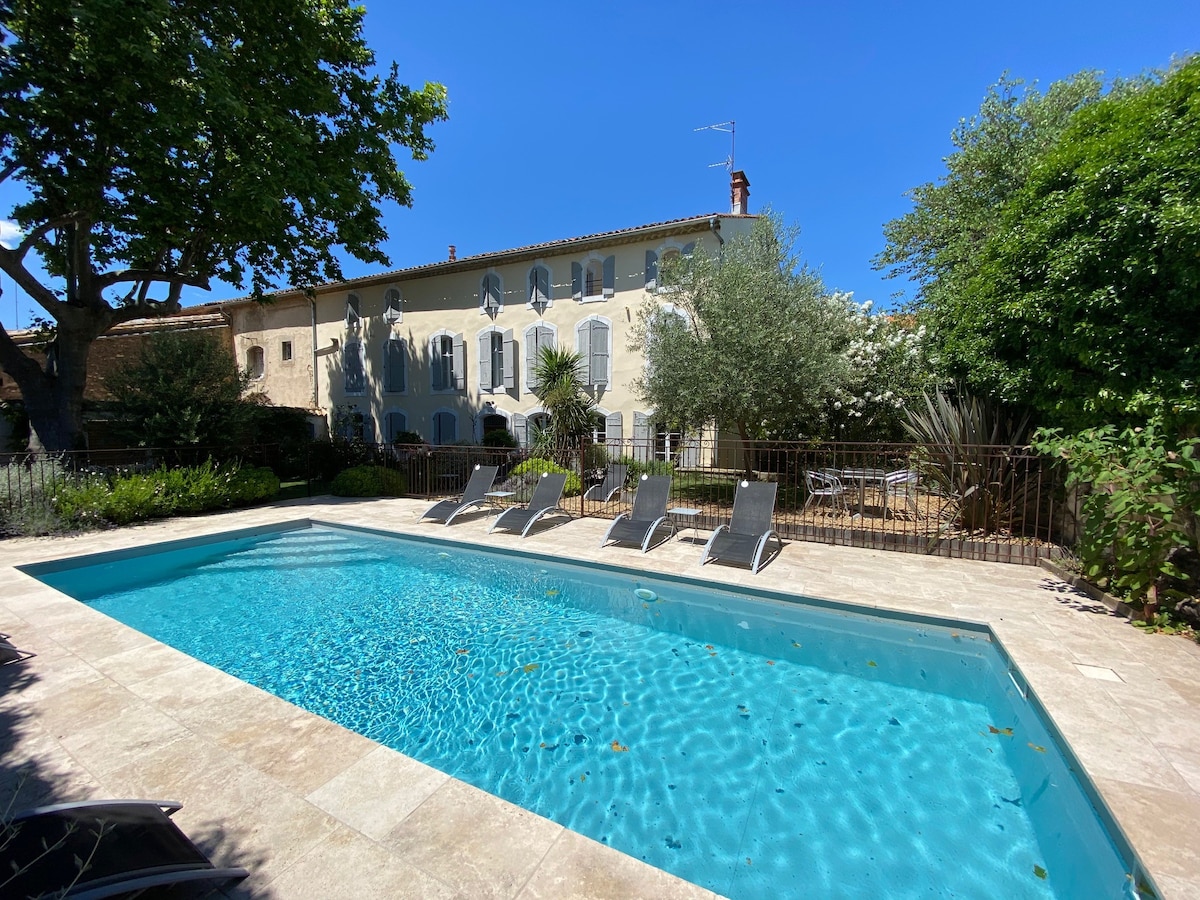 Appartement situé au premier étage d'une maison du 18ème siècle entièrement restaurée située au coeur d'un village historique, proche de la Clinique CAUSSE ,du canal du midi et stations balnéaires. Jardin clos paysagé de 500 m2 avec piscine et plancha à partager. Borne recharge pour véhicule électrique à 10 m de la maison sur parking de la poste .