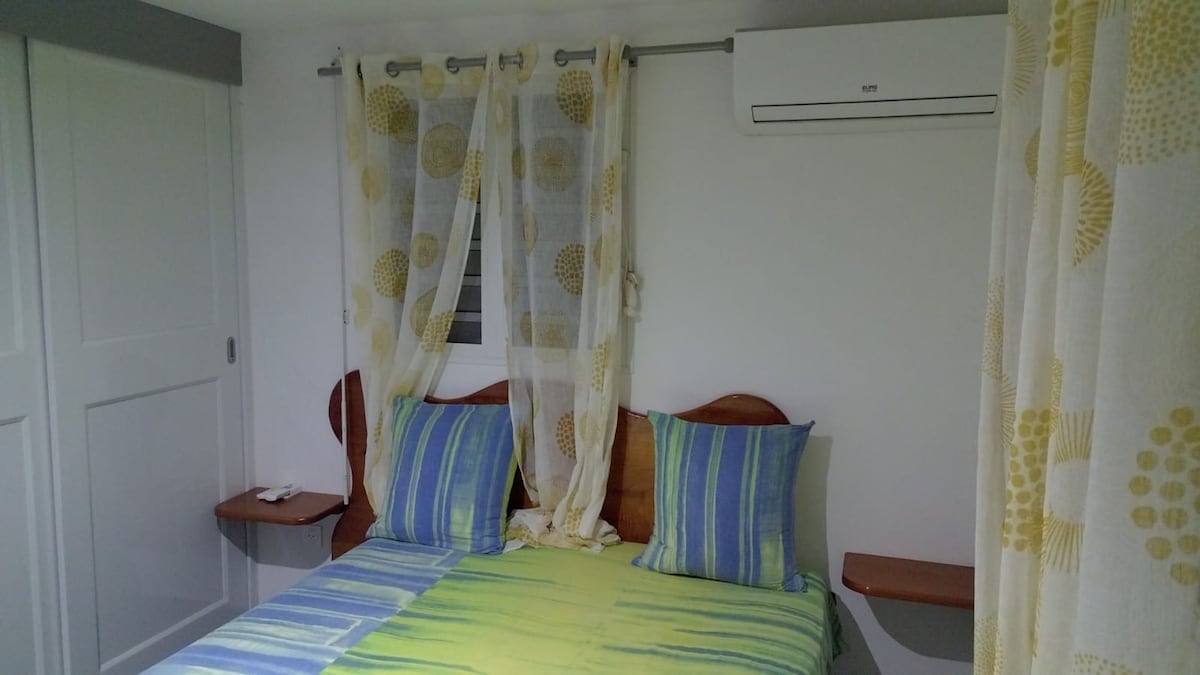 Venez poser vos valises au Gîte Fleurs des Îles, un charmant cocon niché au cœur d’un environnement paisible et fleuri. Ici, tout est pensé pour vous offrir un séjour reposant, dépaysant et authentique, entre nature luxuriante et douceur de vivre. Profitez d’un espace lumineux, décoré avec goût dans une ambiance tropicale et colorée. La cuisine est entièrement équipée, le salon climatisé est propice à la détente, et la terrasse privée vous offre une vue dégagée sur le jardin