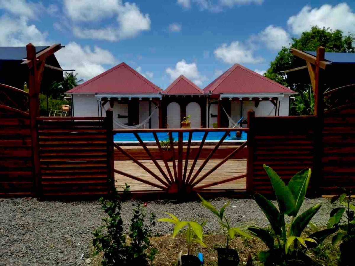 Au milieu d'un parc tropical, ce petit gîte confortable vous attends pour passer des vacances natures avec piscine, jacuzzi, et à 80m d'une crique sauvage. Composé d'une chambre double avec moustiquaire, climatisation, TV, wifi, placard, une salle d'eau avec douche à l'italienne. La chambre donne sur la terrasse protégée ou se trouve la cuisine équipée avec vue sur le jardin et la mer. Service en plus sur demande (mail ou téléphone)