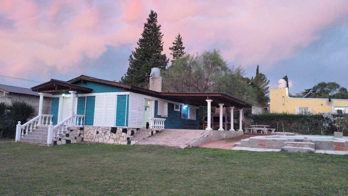 "El Churrinche" una casa en las sierras de cordoba para desconectar y disfrutar de la naturaleza con familia tanto como amigos. Cuenta con espacio para 5 personas, 2 habitaciones, 1 con cama doble, la otra con 2 camas individuales y un sillon cama en el living. Pero lo que destaca de esta casita es su espacio verde, amplio y con pileta para aprovechar los dias de calor. Ubicada a pocas cuadras del Golf y del centro, privilegiada por su tranquilidad cercania.