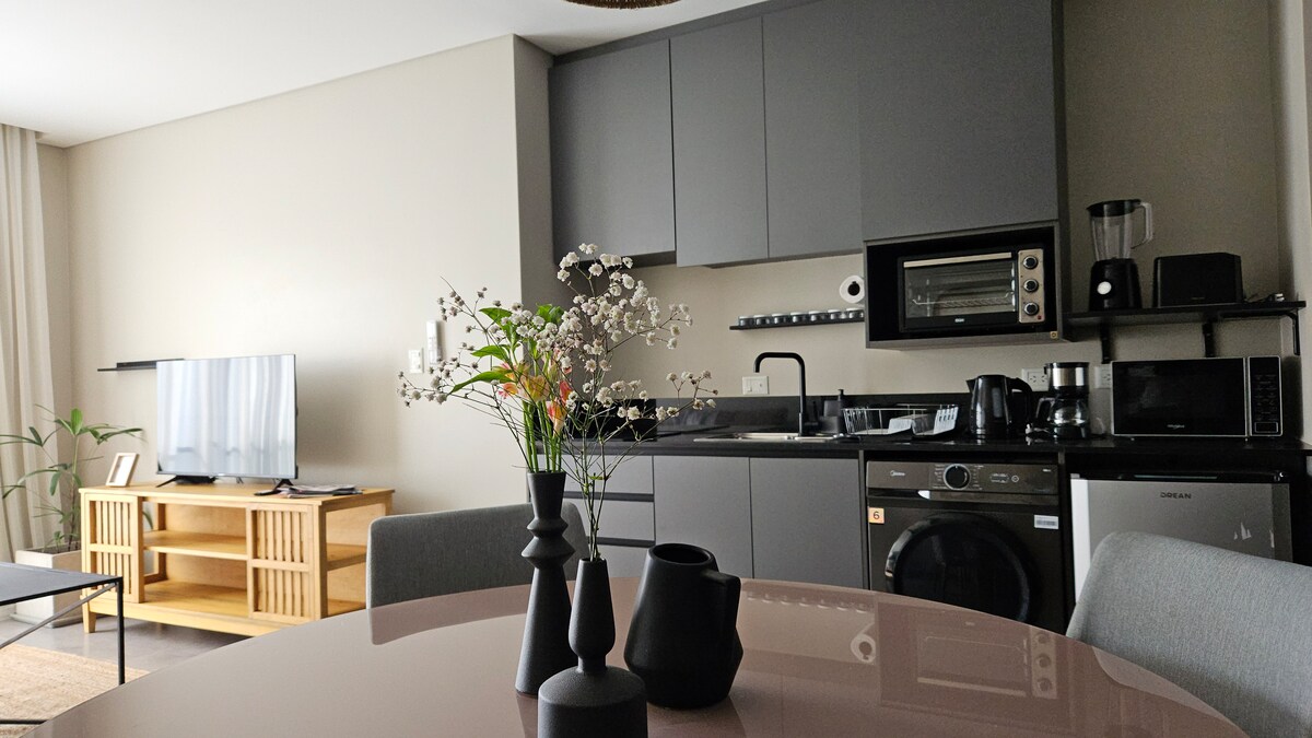 Este hermoso deparamento combina la modernidad y el encanto natural del entorno ribereño. Ofrece vistas panorámicas del río en todos sus ambientes, invitándote a contemplar la serenidad del agua en todo su esplendor. Los ventanales de piso a techo inundan el espacio con luz natural. Se encuentra equipado con smart tvs, equipo de audio y electrodomésticos de primera calidad. Los tvs cuentan con servicios premium de Netflix, YouTube, Disney y Max. Tiene un baño principal y un toilette.