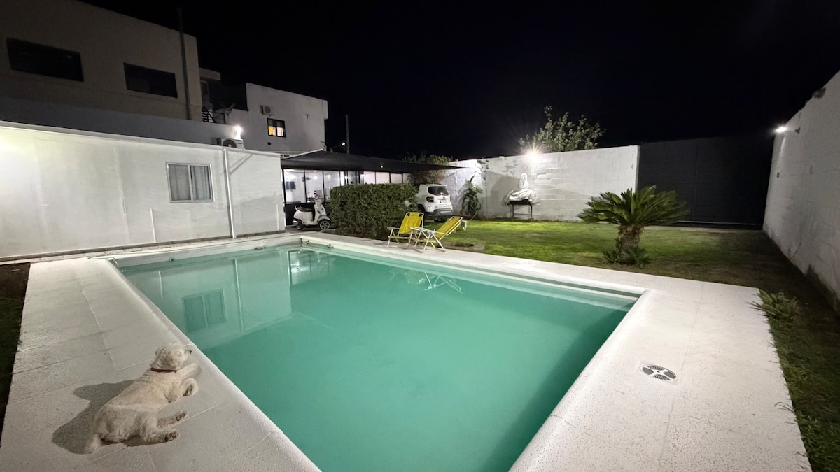 Relax with family and friends in this calm house! Here you don't shares common spaces with other people. This house incluide all services like wi-fi, bedding, air aconditioning (hot and cold), hot water, barbecue and Tv. Enjoy the garden with plants and swimming pool. We are from 10 min to the city center. You'll have all services and commerces in an area of 500 mts (restaurants, shopping).
