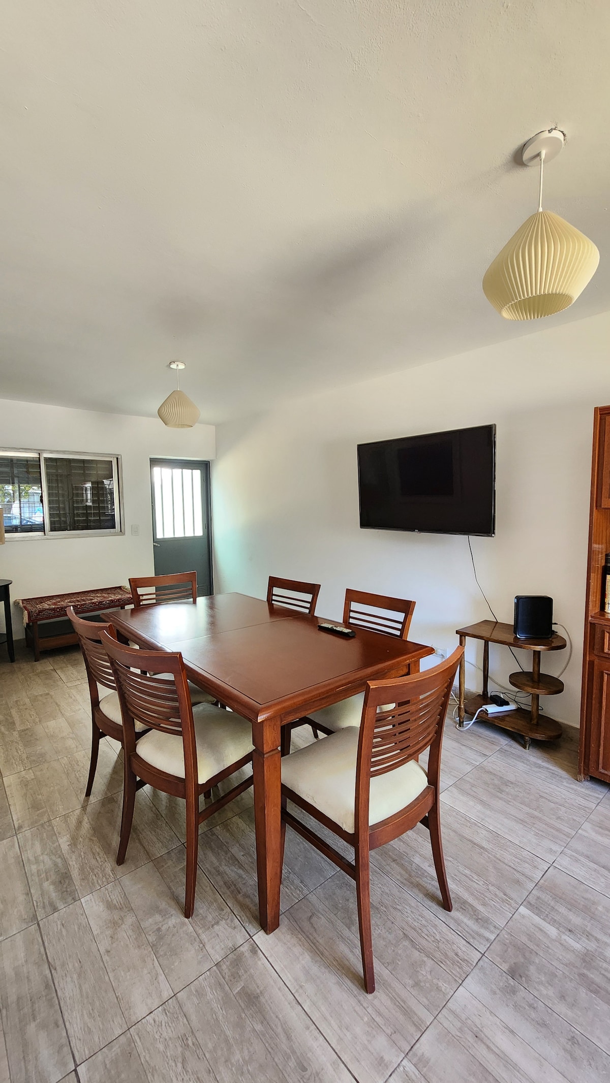 Casa a nuevo de 120 mts2. con decoración tipo industrial, muy iluminada, dos dormitorios, todos los espacios tienen ventanas, ventilador de techo, es muy amplia y confortable, con quincho abierto, asador y patio de cesped, lavadero cubierto y aceptamos mascotas.