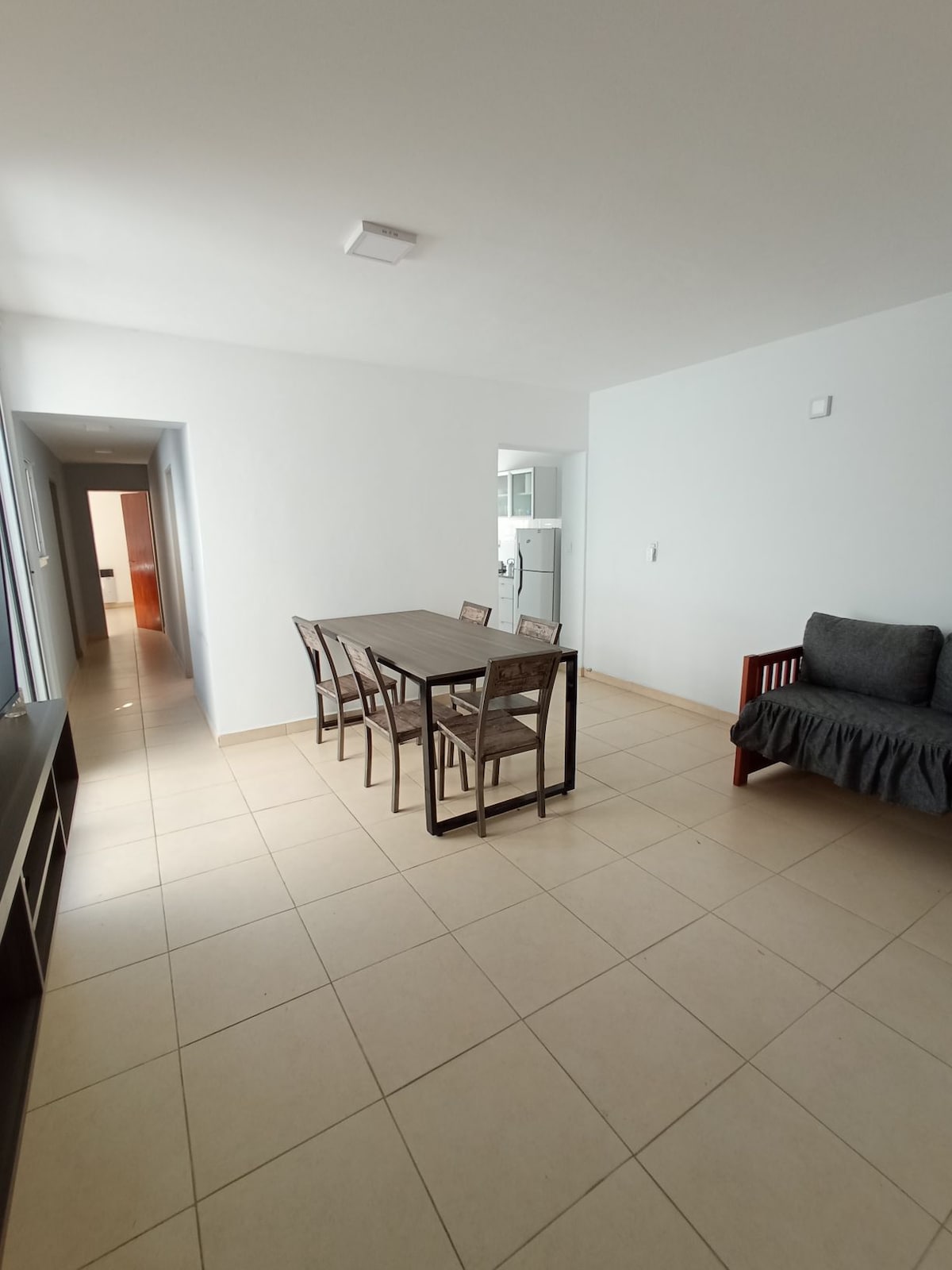 Departamento de 3 dormitorios, completamente equipado, 2 camas individuales, 1 doble matrimonial (queen), 1 cama adicional individual, Tv Smart, aire acondicionado, Baño completo con ducha, Cocina completa, vajilla, Ropa blanca, PB externo, Patio, en el centro en zona del Nuevocentro Shopping (Pasaje Groppo al 1000) Muy linda zona, con la tranquilidad de un barrio pero a pasos del centro. Capacidad para 4 o 5 personas.