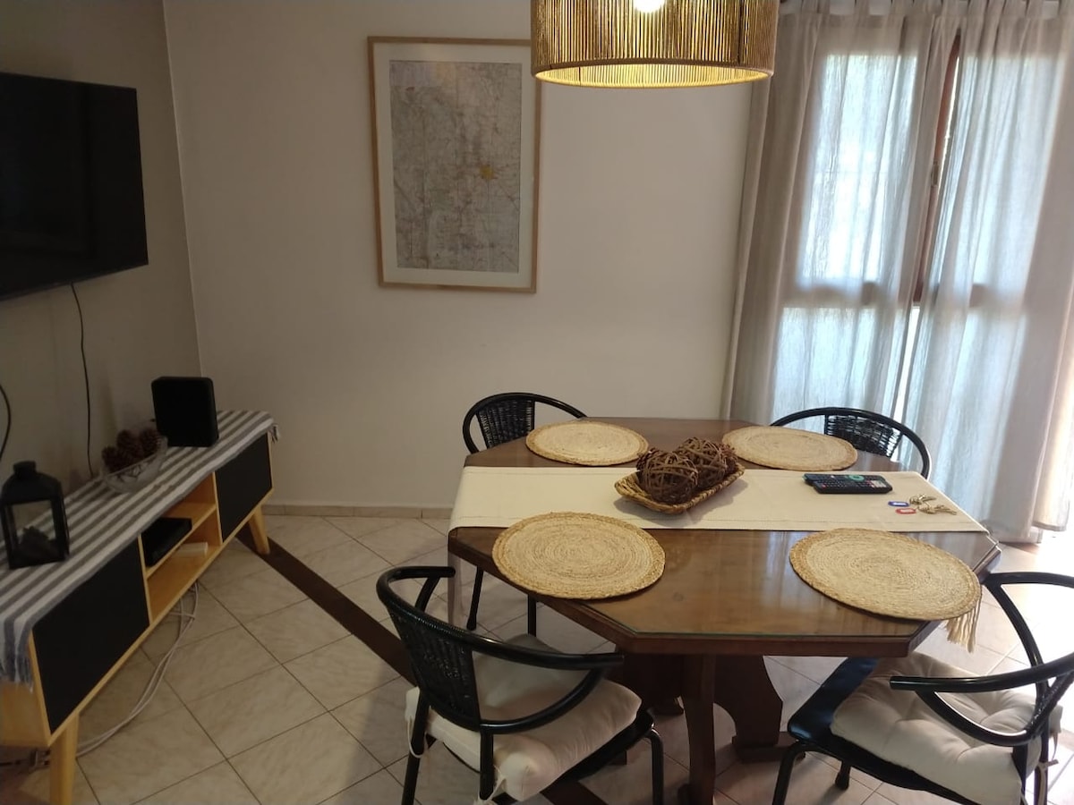Departemento de 2 dormitorios, completamente equipado, PB externo en el centro en zona del Nuevocentro Shopping (Pasaje Groppo al 1000) Muy linda zona, con la tranquilidad de un barrio pero a pasos del centro. Capacidad para 4 personas.