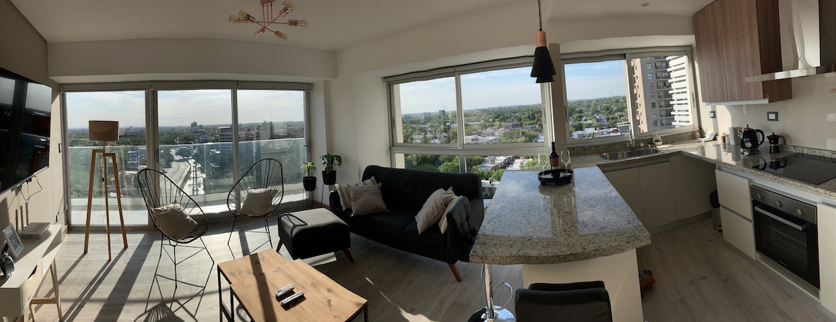 Hermoso departamento en el edificio más lindo y alto de Mendoza. Con vistas panorámicas a la ciudad de Mendoza y a la montaña. Cuenta con terraza Ubicación: - En el mismo complejo de un mercado gastronómico (cuenta con supermercado, cafetería, restaurantes) - La mejor ubicación en la Ciudad de Mendoza - Zona segura y linda para pasear - El edificio cuenta con seguridad 24hs - Atracciones turísticas cerca: Parque general San Martín, Calle Aristides Villanueva (zona de bares y restaurantes)