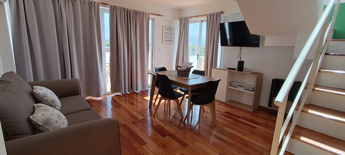 Dúplex super acogedor, en el último piso de un edificio residencial. Totalmente remodelado y equipado. Tiene terraza privada con vista espectacular para disfrutar el amanecer en la ciudad y el atardecer en la montaña. La ubicación es excelente, ideal para conocer y disfrutar Mendoza. Cerca de todo: a una cuadra de la calle Arístides con los mejores bares y restaurantes; a pocas cuadras del centro y del parque San Martín y a pasos de una estación del metrotranvía y la red de ciclovía.