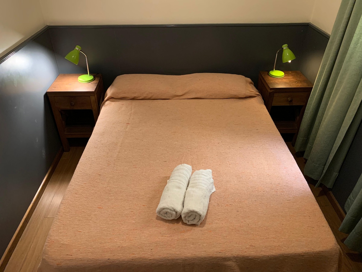 Las pequeñas habitaciones más confortables del Hostel! Cama matrimonial con baño privado en suite, aire acondicionado, Caja de Seguridad, Smart TV, blancos.