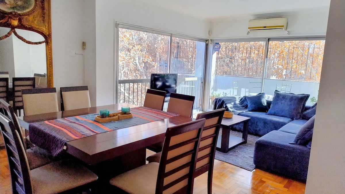 Located in a quiet residential area, it offers all the amenities you need for a stay in Mendoza. Its proximity to the downtown area (a 15-minute walk) and its peaceful location will make your stay a memorable one. Surrounded by green spaces and nearby shops, just one floor down, you'll find everything you need: a bakery, a café, an ice cream shop, and more. Half a block away, you'll find the metro, which allows you to explore the city and visit wineries.