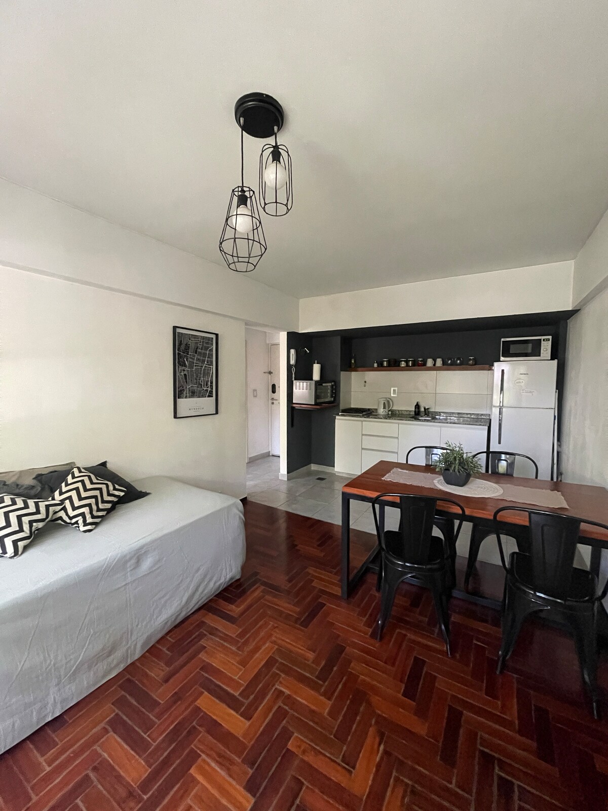 🏠 Disfruta de un espacio íntegramente remodelado, cálido y diseñado para que vivencies la #ExperienciaMendoza. Cada detalle fue pensado para que nuestros huéspedes se sientan cómodos. En un total de 60 m2 cuenta con cocina moderna y super equipada. Luminoso living y acogedores dormitorios con calefacción y aire acondicionado. A pasos del Parque San Martin y de la Avenida Aristides Villanueva . Barrio tranquilo y vecinos agradables harán que tu estadía sea inolvidable.