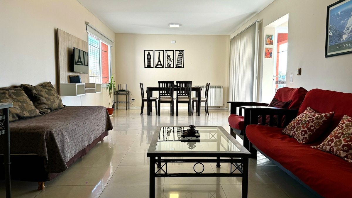 Spacious and comfortable apartment with a privileged location, covered parking within the facilities. Located near the city center in a quiet and safe area, with easy access to public transportation and the main attractions of Mendoza. Bars, supermarkets and service stations a few blocks away.