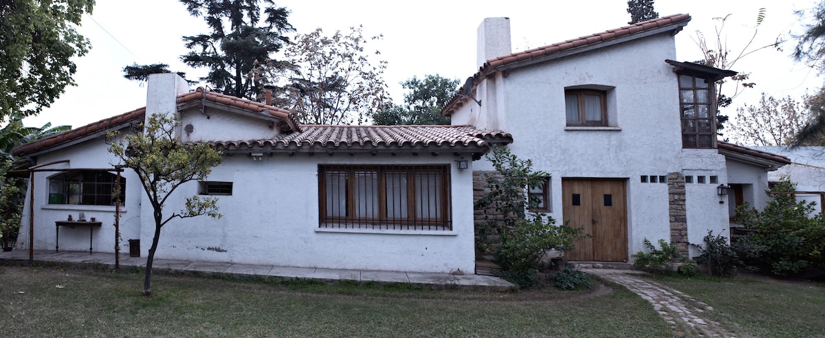 Esta casa ofrece un relajante contacto con la naturaleza. Cuenta con un patio mayor, con pileta con solárium y espacio de césped y patio interno acondicionado como sala de lectura. Baño exclusivo para la habitación. Podrás disfrutar cocina comedor equipada, living, biblioteca y préstamo de libros, patio de lectura, galería con sillones, quincho, churrasquera y cochera (consultar). Vivimos mi hija, yo y dos perras, Manteca y Azúcar. Ubicada en barrio residencial a 800 mts del parque de la ciudad