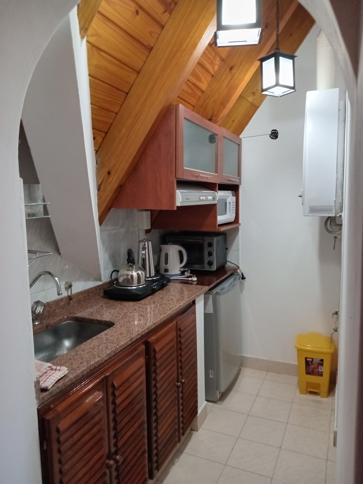 Es un monoambiente con todas las comodidades para 4 personas, tranquilo y seguro a 100 metros del río Vaqueros, con excelente iluminación . La pileta será compartida con los niños de la casa y la familia 😊 Tiene anafe, horno eléctrico, pava eléctrica, vajilla, heladera, tv con cable, ventilador de techo, estufa eléctrica, lavadero, tendedero y agua caliente las 24 horas. Se puede hacer uso del jardín y de la parrilla además del tobogán, la hamaca y la cama elástica para quienes van con niños.