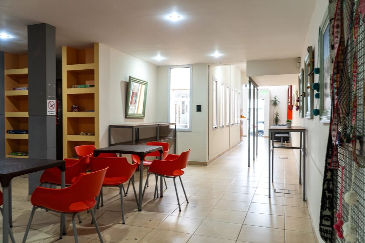 Disfruta tu estadía en esta Casona Estilo Colonial ubicada en pleno centro, una zona residencial, linda y segura rodeada de todos los atractivos turísticos que la ciudad ofrece a los cuales se puede ir a pie.. Cuenta con un comedor y una terraza única con vista al cerro San Bernardo, donde puedes relajarte y disfrutar. Ofrecemos un desayuno clásico autoservicio que cuenta con: Tostadas (+ queso crema - manteca - mermelada) Cafe, Te, Mate, Leche, Chocolate