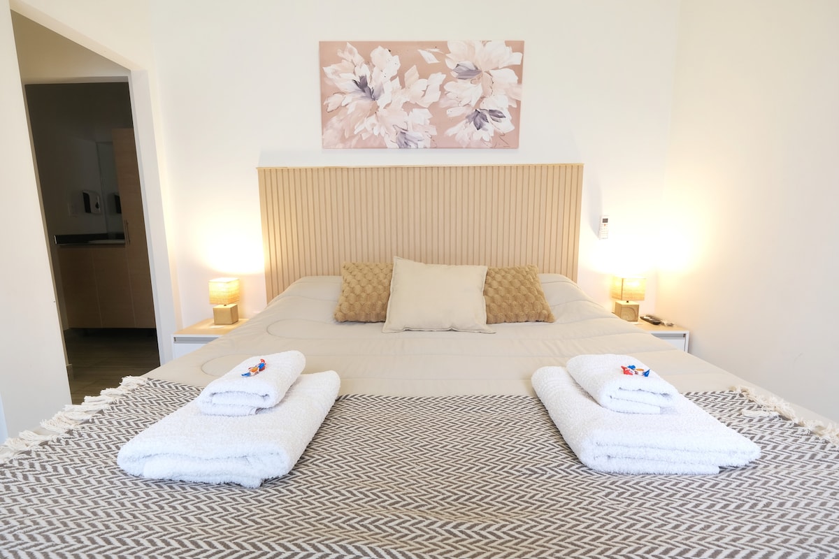 Único por su estilo moderno, ubicación central en el corazón de la ciudad y atención al detalle. La decoración acogedora crea un ambiente confortable. Ofrecemos aire acondicionado, wifi de alta velocidad, Smart TV, ropa de cama hotelera de calidad, toallas suaves, acceso a una zona de lavandería y estacionamiento. Estamos presente en cada detalle. Contamos con seguridad las 24 horas para garantizar una estancia tranquila. Todo está diseñado para que los huéspedes se sientan como en casa!