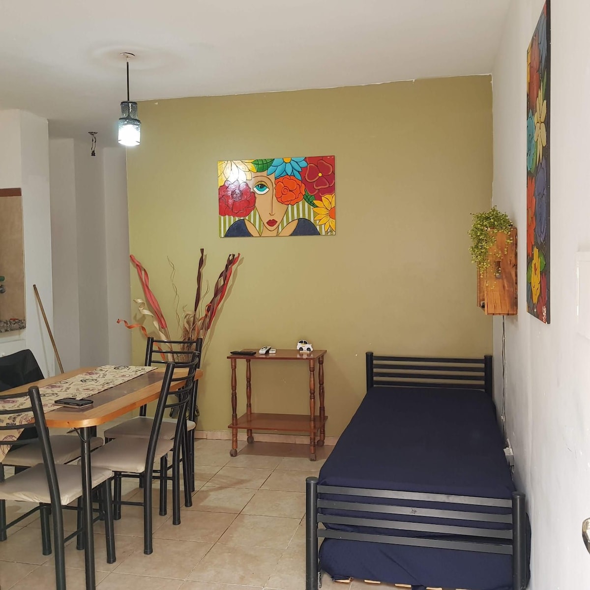 Excellent location! Spacious, beautiful, and bright apartment, recently renovated with love. Easy access to the city and surroundings by car, public transport, or walking. We're here to help make your stay warm and comfortable 😊 Block distances: *2 from Mayo Park (the largest green lung of the city), Aldo Cantoni Stadium, and the Engineering Faculty *3 from Juan Victoria Auditorium *4 from Franklin Rawson Museum *5 from Bicentennial Theater and Civic Center *10 from Sarmiento Theater