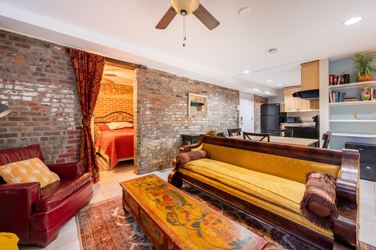 Cool 1900 brick basement level studio with curtained off sleeping area, fast wifi, tile floors, brick walls, nearly new kitchen, granite countertops, air conditioning & shared laundry. South Central Troy (Washington Park Neighborhood) quiet street, just 1 block to Carmen's Cafe, 3 blocks to Russell Sage, within walking distance to quaint shops, dining, nightlife and everything else Downtown Troy has to offer. Close to R.P.I, H.V.C.C, and Emma Willard.