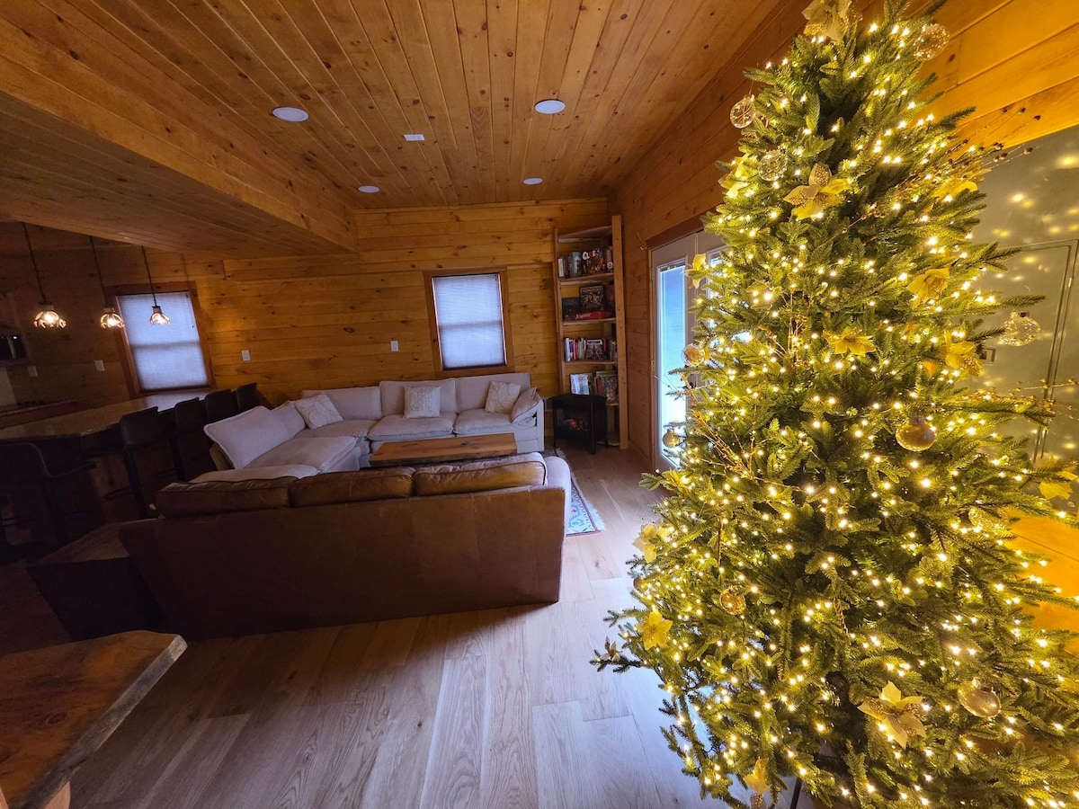 Unwind and recharge at this spacious, beautiful bungalow.. Take a 10 min stroll to downtown Bolton Landing! This cottage was lovingly finished with a beautiful gas fireplace, quartz countertops in the fully equipped kitchen, and barn wood accents for a luxurious yet rustic feel. Enjoy a cocktail while playing darts, ring toss and card games in the tiki hut. Bolton downtown shops, and restaurants are only a 2 min drive. Lake George village 20 min away.