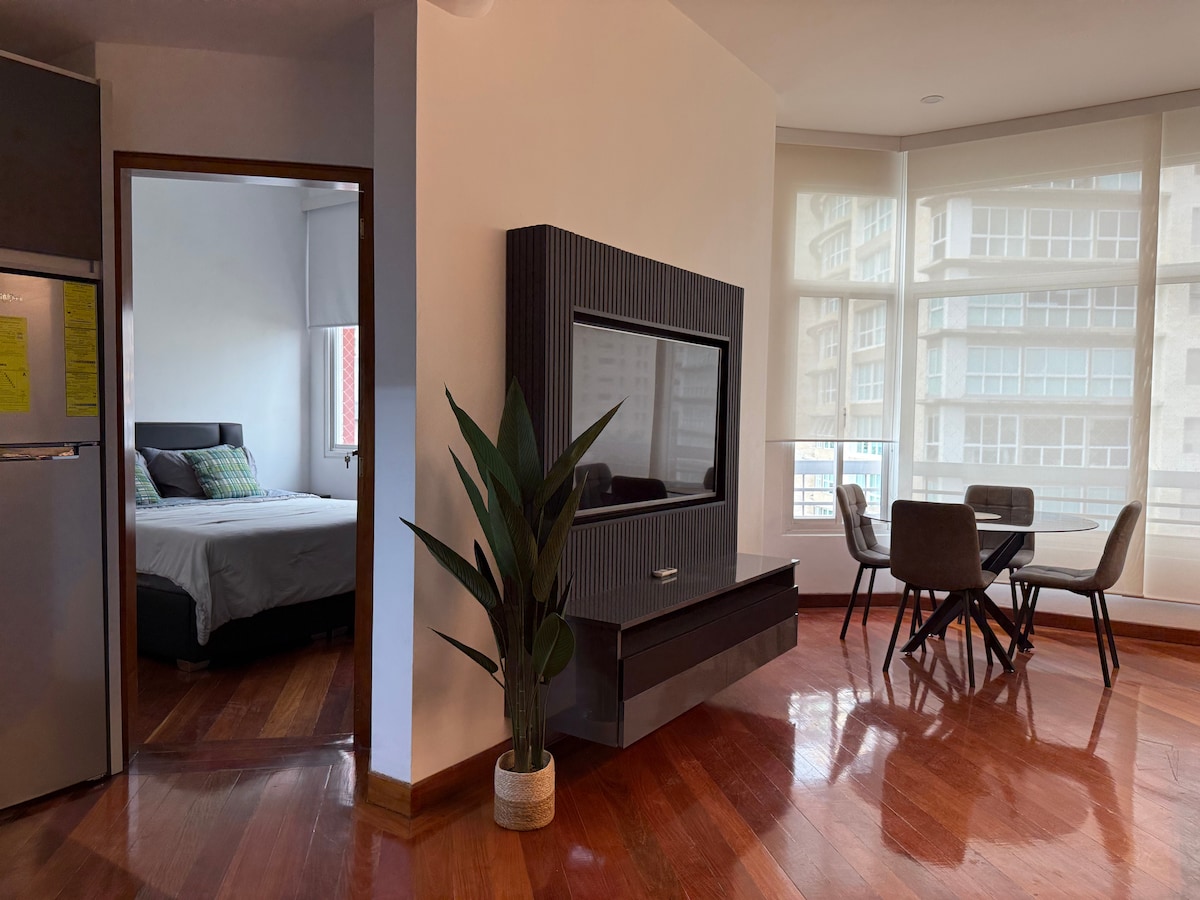 Suite equipada con estilo y confort en Colinas de Bello Monte, zona exclusiva de Caracas. Diseñada para quienes valoran el confort con alma: luz ambiental para desconectar, cama que abraza, libros que te esperan y detalles que cuentan historias. A solo pasos de Las Mercedes y el Rosal, con cocina equipada, A/A, TV , biblioteca, lavadora y parking techado. No solo duermes aquí. Vives diferente.