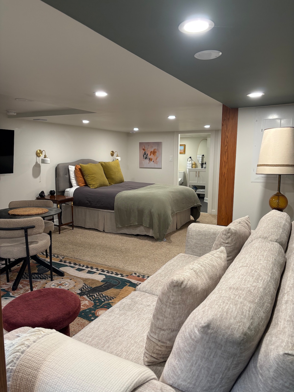 Kick back and relax in this calm, stylish space. Treat yourself to luxury. Espresso machine, fine linens, heated bathroom floor, bidet, premium-local shower products and conveniently stocked kitchenette and breakfast items. **Ceiling height is 6’ ** (6’2” in the kitchen) This is a self contained suite with keypad entry. There is a combo washer & dryer unit in the suite. We also rent our car on Turo! Come enjoy a beauty peaceful vibe, tucked into nature, convenient & close to the action!