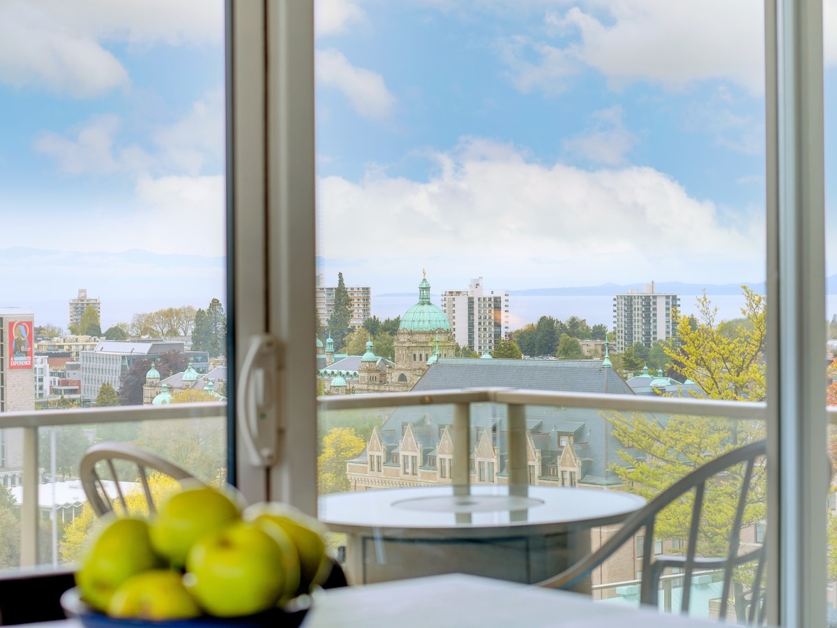 Enjoy stunning Inner Harbour views from this 15th floor modern & spacious corner suite in the heart of downtown Victoria w/ FREE secure parking. This home is just steps away from the iconic Empress Hotel, Inner Harbour & Parliament buildings. The suite boasts a chef's kitchen, floor to ceiling windows, open plan living & dining area & a generous King bedroom w/ ensuite. Unwind on the expansive wrap-around balcony w/ sweeping city views, or enjoy building perks such as the gym, pool & hot tub.