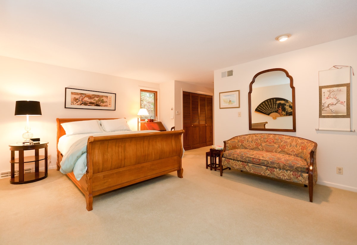 Unique and roomy space with private entrance, two bedrooms, full bath with tub shower, and plenty of room to relax. Kitchen space has mini fridge, microwave, toaster oven, hot plate, and crock pot. Pleasant living area opening to 2nd floor deck. WiFi with Ethernet also, great remote work space. Quiet and private, only common area shared with us is first floor entry into breezeway. Free parking on premises. Full coffee setup for your breakfast included, and homemade scones in seasonal flavors.