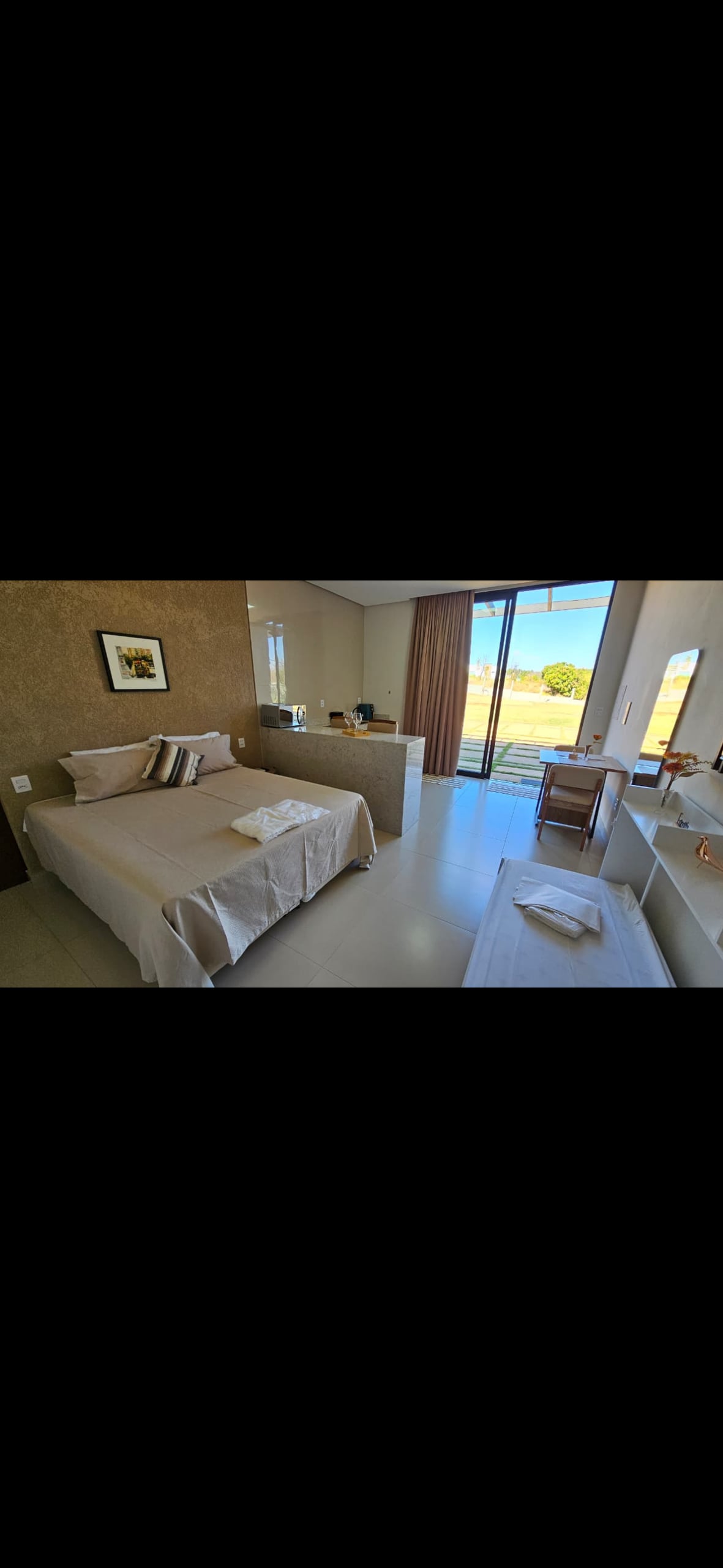 Relaxe neste espaço calmo e cheio de estilo.A melhor opção de conexão com a natureza ,passeios, conforto, praticidade e tranquilidade em uma localização e acessibilidade privilegiada, cada apartamento conta com banheiro privativo, ar condicionado, uma cama de casal, sofá cama, smart tv, Wfi, frigobar e uma pequena cozinha equipada para o preparo do café da manhã e pequenos lanches, estacionamento privativo área de laser com piscina Fornecemos roupas de cama e banho • Não servimos café da manhã
