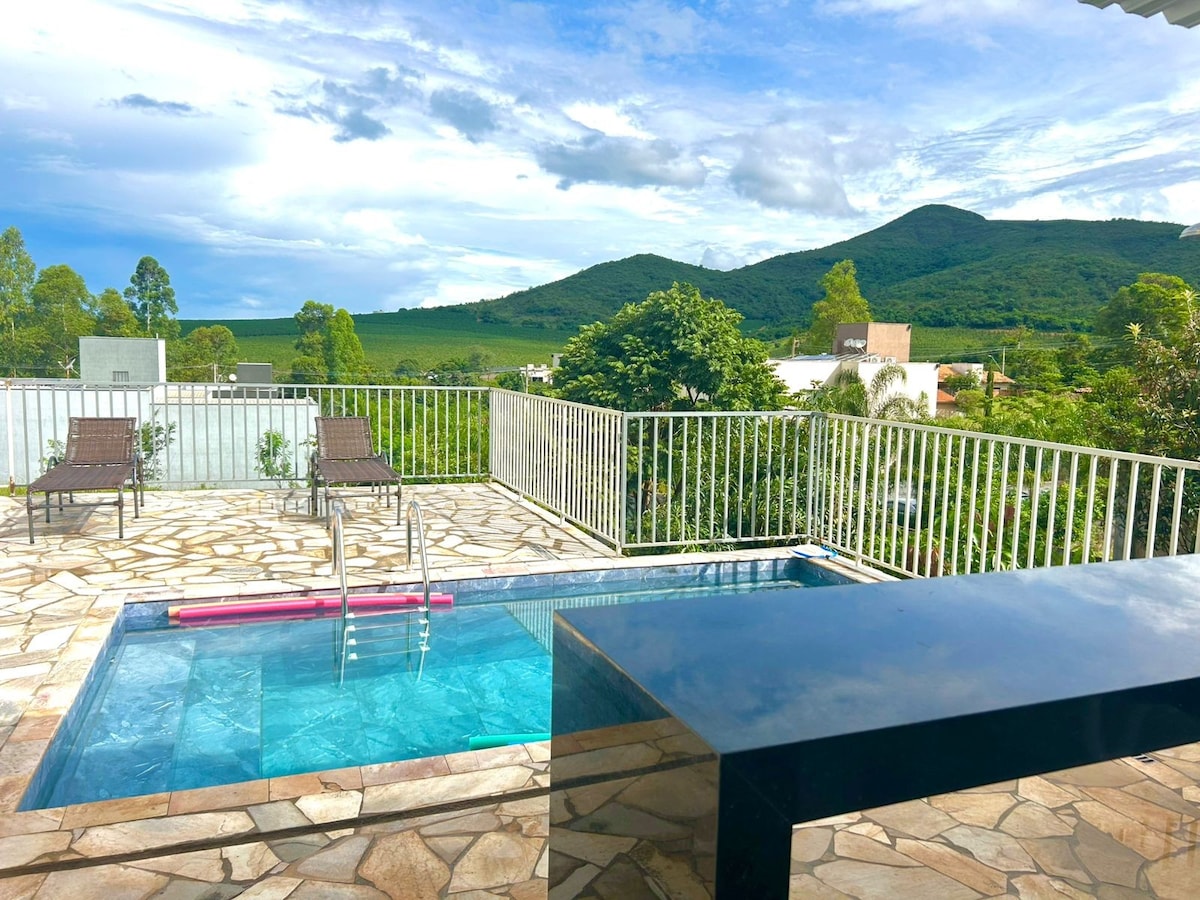 Casa luxo em Capitólio, situada no bairro Ponta do Sol, maravilhosa vista para o Lago de Furnas, Escarpas do Lago e para as montanha, sem contar com um lindo pôr do sol. São 5 suítes, duas com sacadas, total de 10 camas e acomoda até 15 pessoas, 1 sala com SmartTV, cozinha completa, piscina, deck com espreguiçadeiras, campinho de futebol, área Gourmet com churrasqueira e lavabo.