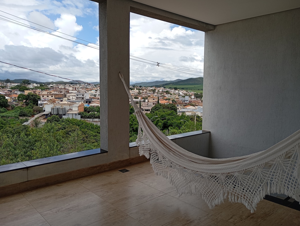 Boa tarde! A casa tem uma sacada maravilhosa sao 2 quartos com cama de casal e 1 quarto com cama de solteiro.sala .cozinha .copa banheiro.tem morros pra subir mas nada fora do normal assim como se vier a capitólio e ir nas cachoeiras tem morros também. A casa tem escadas e fica segundo andar sendo que tem 1 em cima e outro em baixo mas nenhum compartilhado a não ser escadas .no anúncio está bem detalhado.que venham e possa desfrutar de capitólio e da casa Bela vista.