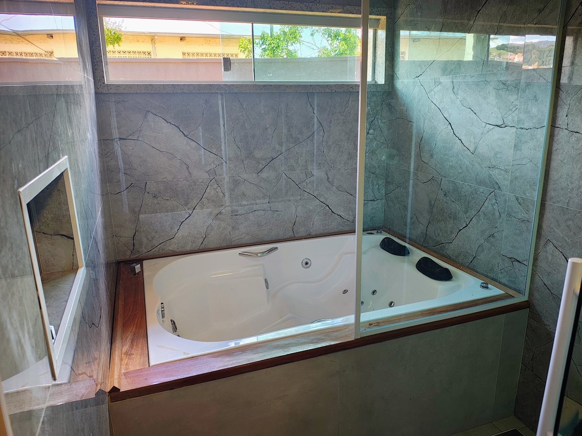A casa possui 5 suítes com ar condicionado em todos os quartos,duas cozinhas com todos os itens necessários para o preparo de refeições ,sala de tv ,duas mesas de jantar ,churrasqueira,2 lavabos ,1 piscinas sem aquecimento ,uma jacuzzi com aquecimento a gás,estacionamento descoberto para até 6 carros. O condomínio onde está situado a casa é banhado pelo lago de Furnas, seguro e possui padaria ,restaurante ,um pequeno supermercado ,pista para caminhada e uma paisagem maravilhosa !