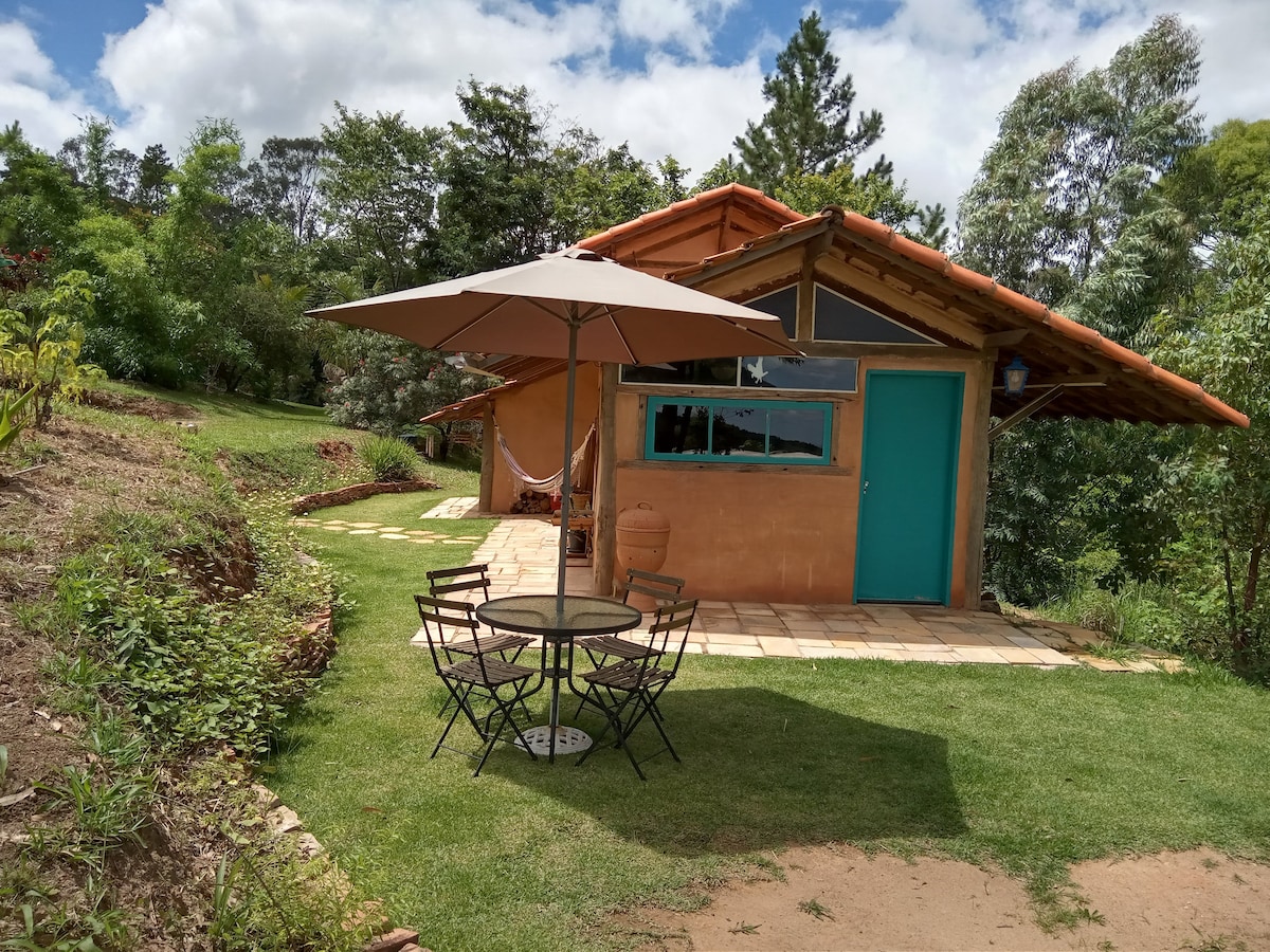 Chalé ecológico e rústico, com lareira e fogueira
