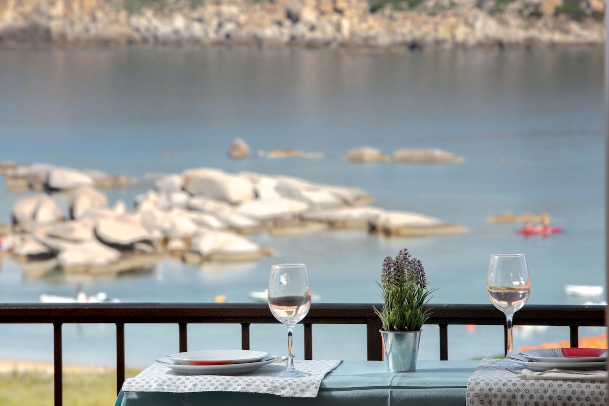 Appartamento al primo piano in piccolo condomino a meno di cento metri dalla spiaggia di levante. Vista sul mare. Per la sua posizione vicino alla spiaggia in un borgo tranquillo, è il posto ideale per famiglie. La casa è molto fresca e luminosa. Giardino condominiale. Possibili passeggiate ed escursioni (vedi https://it.wikiloc.com/percorsi/outdoor/italia/sardegna/capo-testa). La Corsica è raggiungibile con traghetto in meno di un' ora.