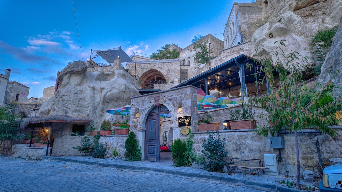 Seperately designed original cave rooms, with heating system and also A/C! Right in the heart of Göreme, surrounded by cafes, pubs, restaurants, shops and fairy chimneys! Have one of the best rooftops where we serve our breakfast and dinner with magnificent view of fairy chimneys and even covered by hot air balloons as all of them pass right above us in the mornings! We have our own restaurant that serves Indian and Turkish cuisine! We have a swimming pool where you can chill and relax!