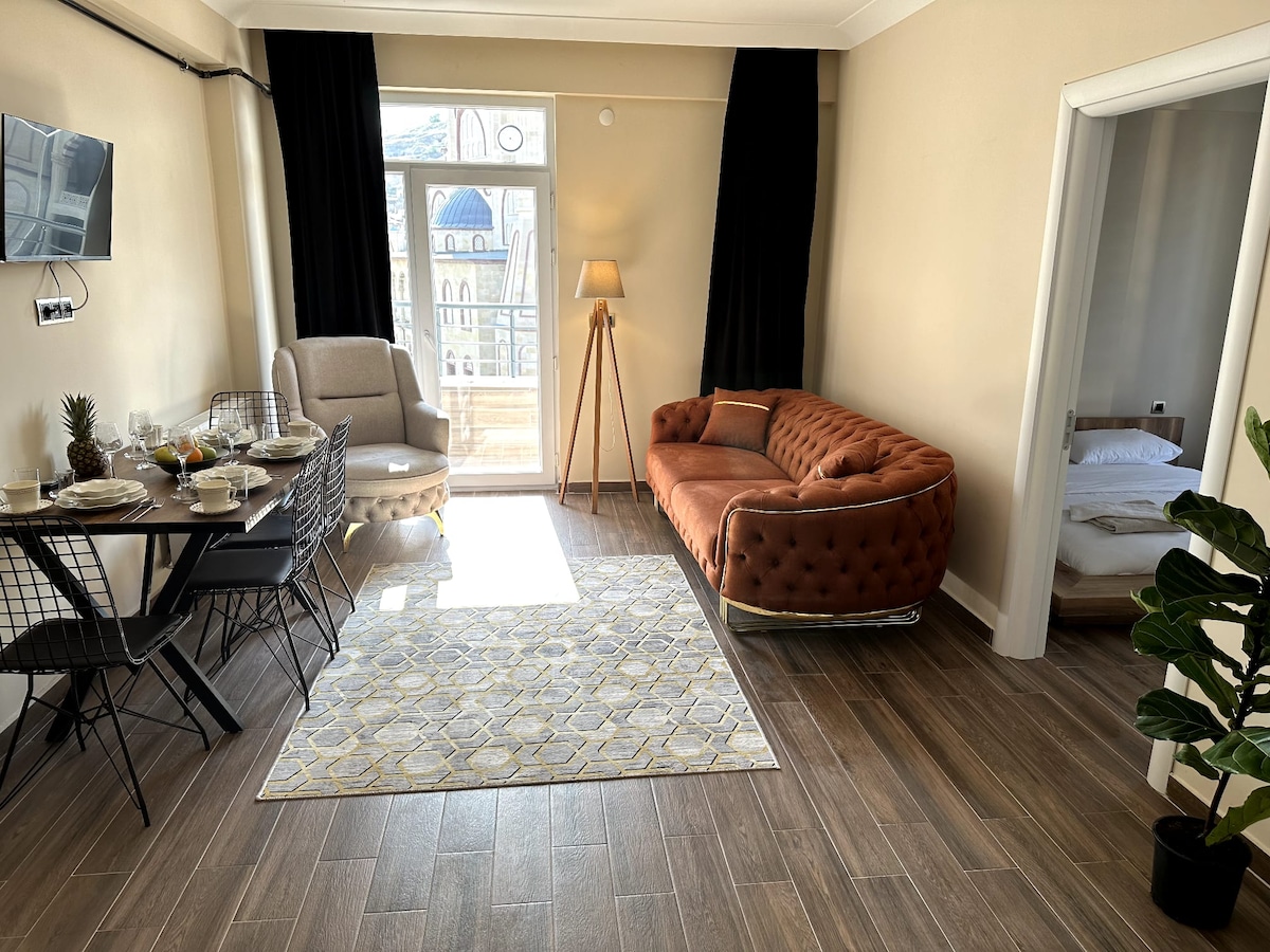 Kapadokya’nın kalbi Ürgüp’te yer alan dairemiz; sessiz konumu, konforlu yatakları ve tam donanımlı mutfağıyla keyifli bir konaklama sunar. Balon turları, vadiler ve restoranlara kısa mesafededir. Aileler ve çiftler için idealdir.