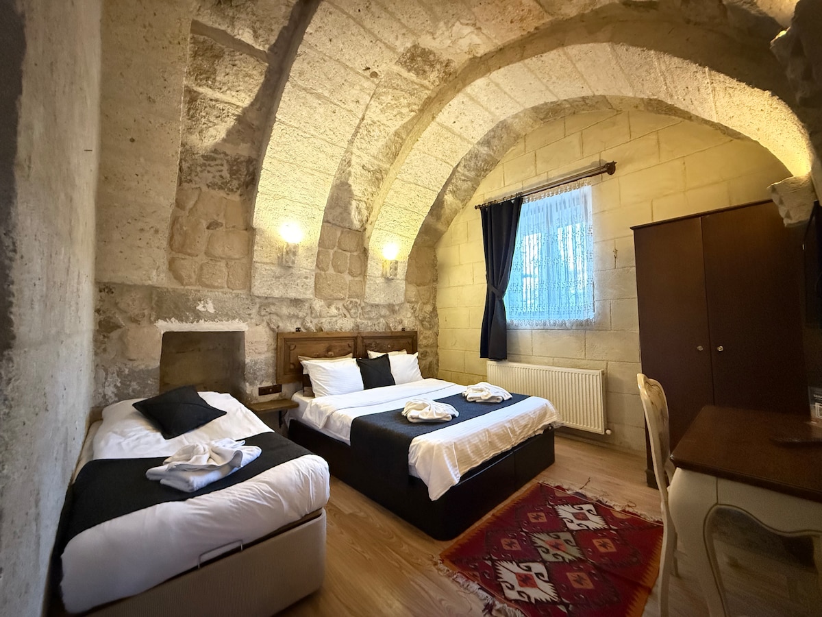 Welcome to Lost Villa, a beautifully restored three-story cave home nestled in the heart of Mustafapaşa — a quiet, historic Greek village in Cappadocia. Step back in time while enjoying modern comforts in this unique cave retreat, perfect for couples, families, or small groups. Wake up to silence, enjoy coffee on the balcony with a view of the village rooftops, and explore nearby fairy chimneys and hiking paths. In the evening, relax in your cozy cave bedroom or dine at one of the restaurants.