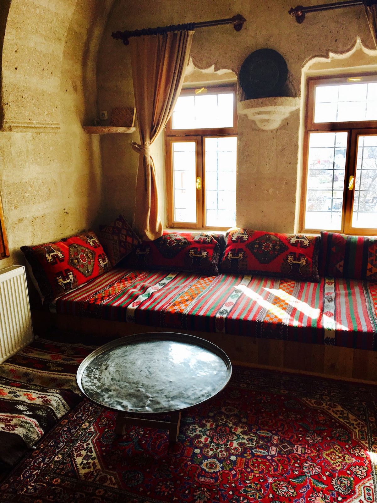 this recently renovated traditional Cappadocian house has three cave rooms with ensuite bathrooms opening to the patio, it has floor heating and great views over the valley and the old town, it's five minutes walk away from Balkan valley which is considered as one of the most beautiful valleys of Cappadocia.