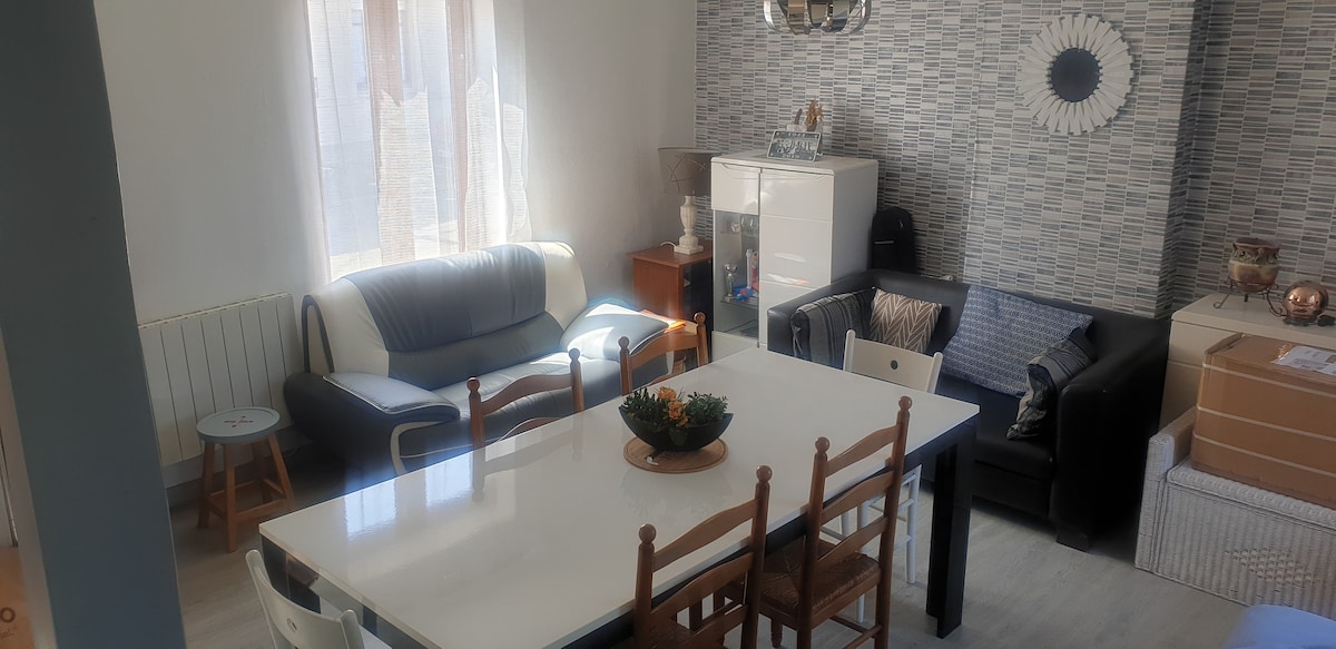 Appartement en duplex avec entrée privative meublé dans un style industriel Au rez de chaussée : pièce de vie avec canapé convertible confortable, un espace cuisine avec table à manger, une salle de douche avec WC Au 1er étage : chambre ouverte avec lit double ( ou 2 lits simples sur demande) Terrasse Parking privatif à proximité