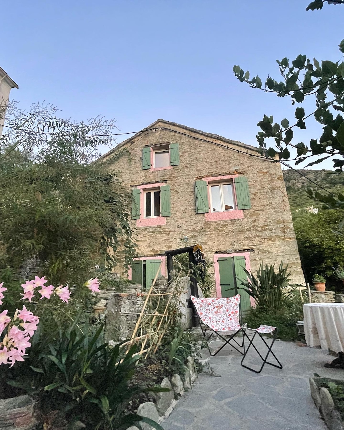 Tradition et confort, une grande pièce à vivre avec kitchette, une salle de bain rétro, chauffage Clim et rétro Clim + insert , jardin et douche extérieure sur vue mer et montagne dans un des plus beaux village du Cap Corse : Rogliano Le studio est située dans le très agréable et central hameau Bettolacce, à 10 mn de la mer en voiture, nombreux sentiers de marche