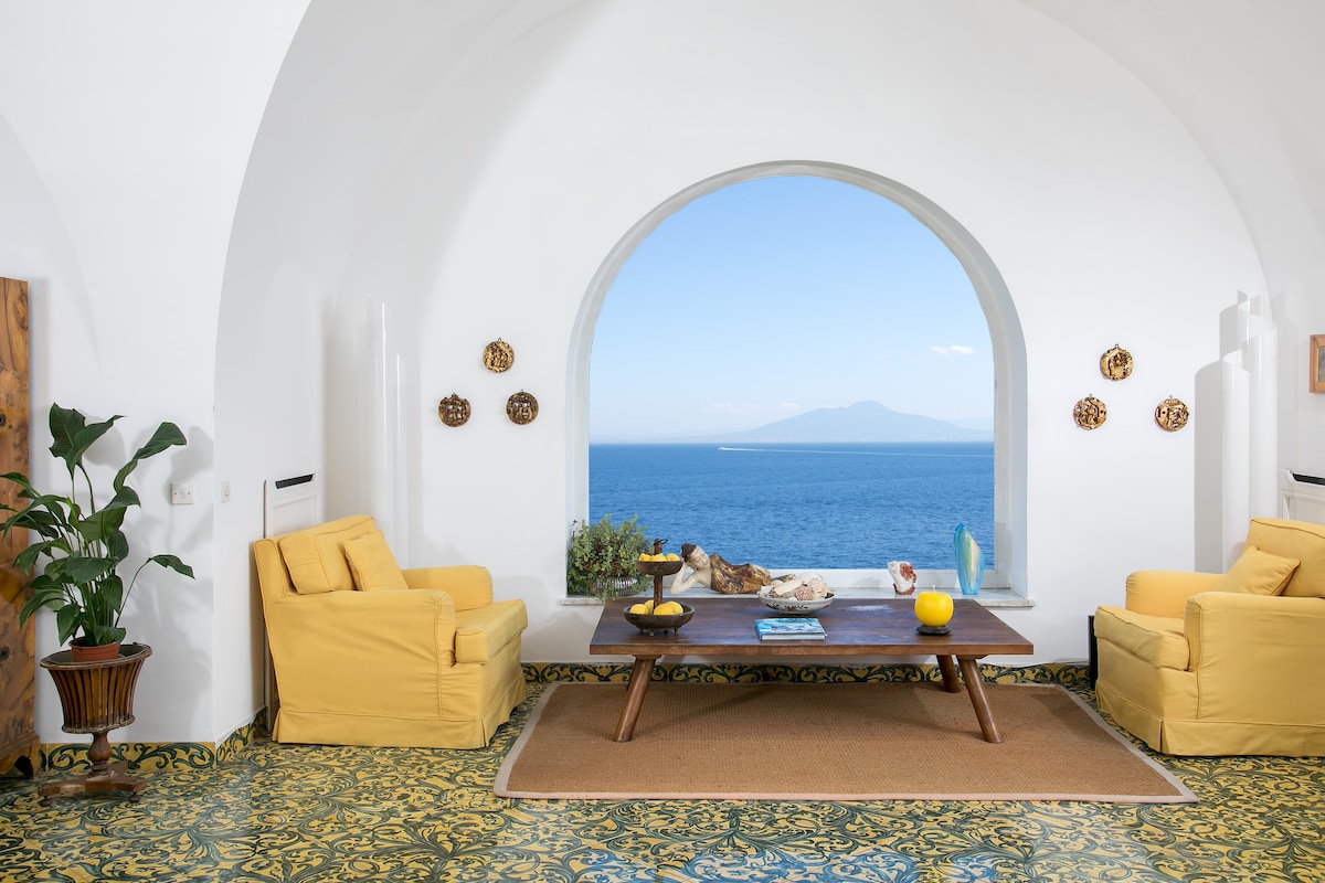 Just 2 minutes walk from the famous Piazzetta di Capri, the nerve center of the island of Capri! Suite "The Sea" is an elegant sea view suite on two levels of 40 m2 with all comforts in the center of Capri, with ancient vaults framing its architecture and contemporary art installations, HD and 4k TV with Netflix access From the splendid terrace you can enjoy the view of the Marina Piccola bay and the famous Piazzetta of Capri, known as the living room of the world!
