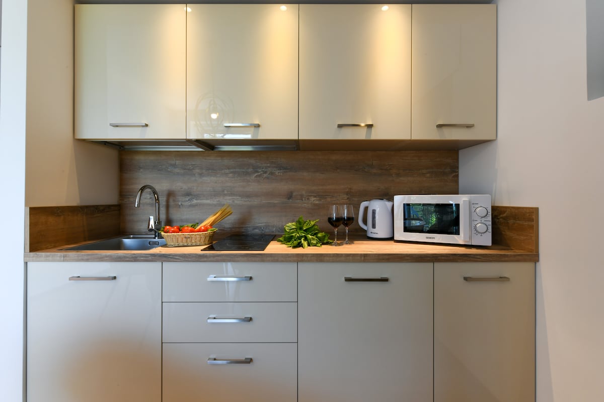 Recently renovated, this unique apartment is tucked into an ancient building in Sorrento’s historic centre. Thoughtfully designed in modern Mediterranean style, it combines traditional details with all modern comforts. Compact yet cleverly arranged, it features a generously sized bed and maximized living space. Just steps from the city’s top attractions, it’s the perfect base to relax and explore Sorrento effortlessly.