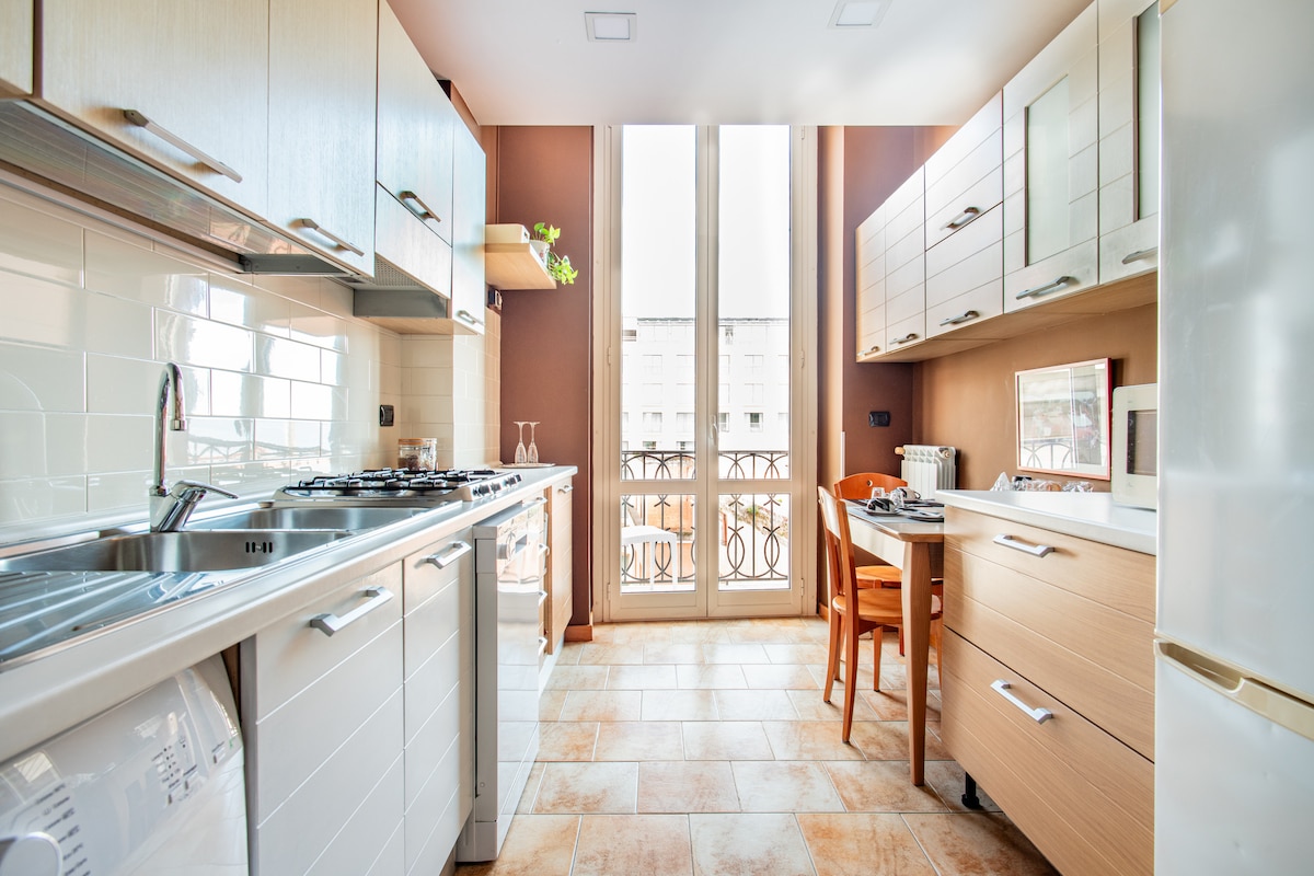 Apartment perfect for a couple or for a small family. Elegant and fully equipped, with a huge rooftop with a panoramic view. It’s located in front of the sea and the Castle. Only 5 minutes walking to Piazza del Plebiscito and the dock, furthermore it is close to bus stops, markets, restaurants and the metro station. Many years of experience hosting people from all over of the world.
