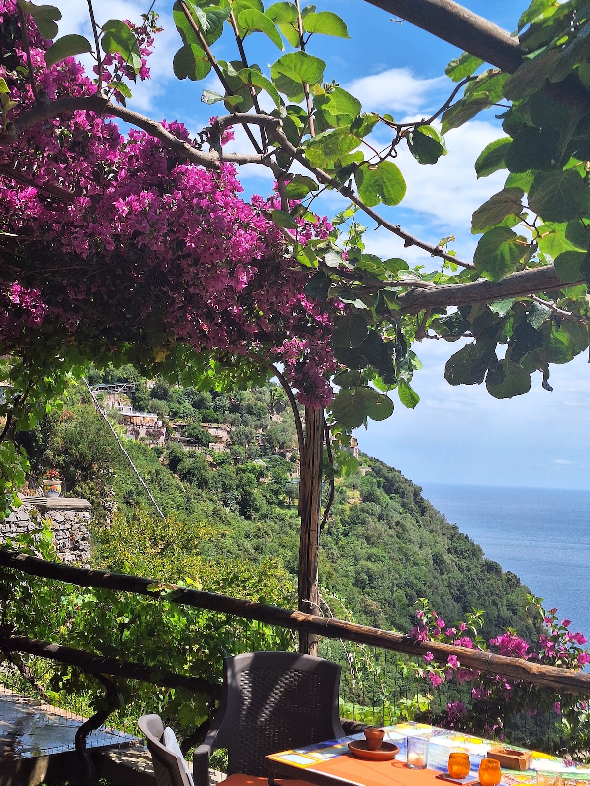 Appartamento completamente arredato. Dotato di 1 camera da letto (matrimoniale), 1 bagno con doccia e lavatrice, ampio soggiorno (con possibilità di 3° letto aggiunto), cucina attrezzata, ampio soggiorno con fantastica vista mare e di Positano. L'appartamento è situato al inizio della scala che porta al SENTIERO DEGLI DEI ed e ‘ accessibile tramite 250 scalini , l appartamento e’ adatto a persone giovani , abituati a fare esercizio fisico!non adatto a persone anziane!