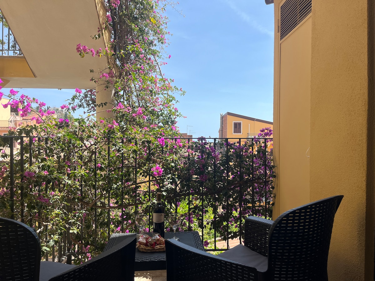 Apartment in the center of Taormina with a large terrace and breathtaking views. A long staircase leads to the apartment The apartment, totally independent, air conditioned and with free Wi-Fi, is located 250mt from Porta Messina, 40mt from the bus terminal, 200mt. from the cable car that leads directly to the sea and a stone's throw from the most important historical works of the city center. The area is well served by everything you need for an excellent stay: minimarket, bars, restaurants...