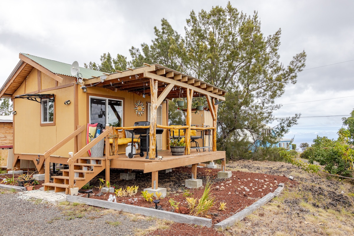 Amazing ocean views, cool nights and gorgeous sunsets. We are centrally located between Hilo and Kona. Perfect for exploring the South end of the island. Guests receive a 30% discount at Sea Paradise. The unit is located about 1-1.5 hours from the Kona Airport, where we offer tranquility, starry skies and an escape from the big city! Private deck, outdoor shower, Queen size bed as well as queen sized futon to sleep 4 guests. Security camera located on perimeter of property for your safety.