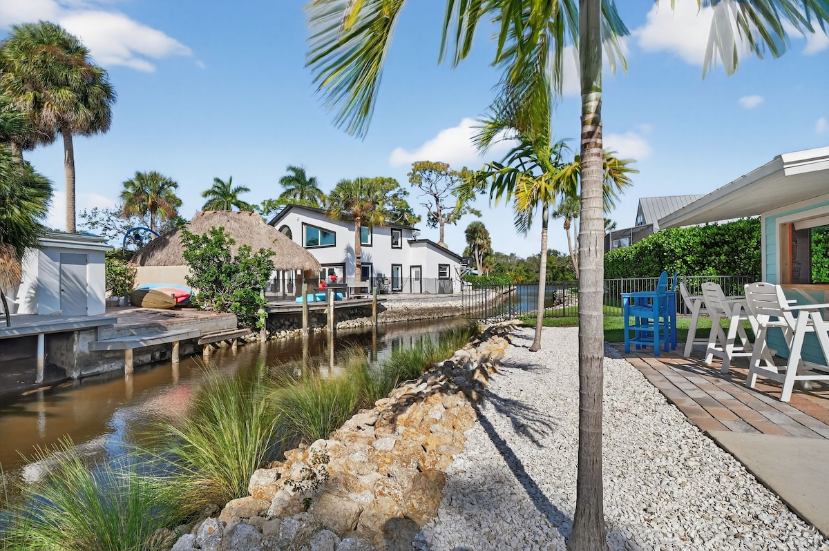Update: In September 2022 we were affected by Hurricane Ian. We had just over 5 feet of flooding in our treasured cottage. We have worked tirelessly to put everything back together. All new tile, walls, electric, lighting, furniture, and we even improved the bathroom! Spacious tropical home with water view from our back yard lanai. Boat Dock with Cleaning Fish Station, BBQ beautiful sunsets with fish jumping in our canal. New large kitchen and one block from art galleries, restaurants and bars.