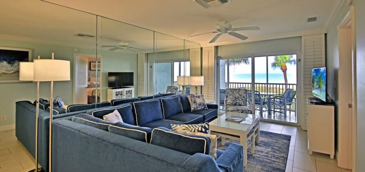 South Seas Beach Villa 2527 is located directly on the beach. The beautiful sunsets over the Gulf of Mexico, along with the condo pool can be viewed from the private lanai. This updated unit has one king size bed located in the bedroom and pull out queen size sleeper sofa. The kitchen is fully stocked, there is an inside and outside dining table. You will have access to the beach, pool, pickleball, tennis courts, beach chairs & towels and BBQ grills located in the front of the unit.