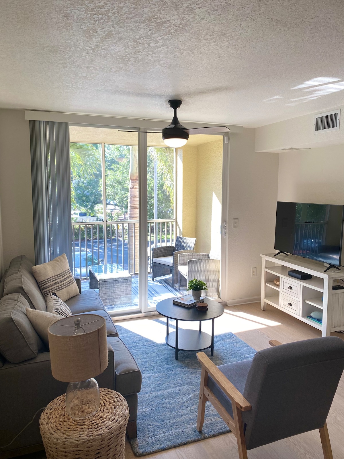 Enjoy breathtaking views from this 1st floor condo at Lover's Key Resort! Updated with new furniture in the, this one bedroom, one bath condo is the perfect place for a romantic couples' getaway. From the large pool area there's no better place to relax in the Florida sunshine! Wake up refreshed and sip your coffee on the private balcony overlooking the water. Prepare meals in the full kitchen or head down to the BBQ grill area!