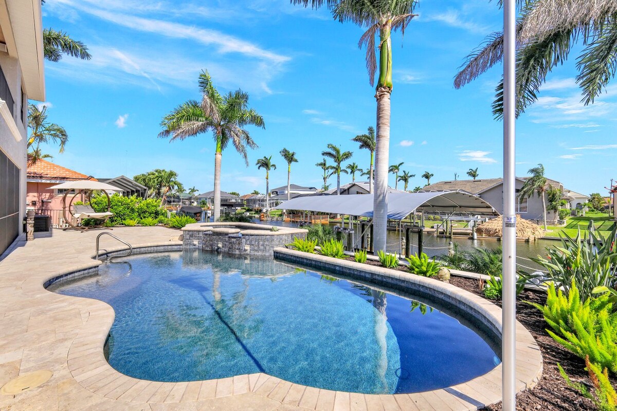 Welcome to your dream vacation home in sunny Florida! This luxurious retreat offers a spacious 4BR/3BA Cape Coral waterfront villa for 8 with a private pool, hot tub, chef’s kitchen, free parking, pet-friendly policy, and reliable Wi‑Fi—perfect for families, couples, business travelers, and remote workers. Casa del Lago is a luxurious waterfront getaway designed for those who seek both relaxation and indulgence.