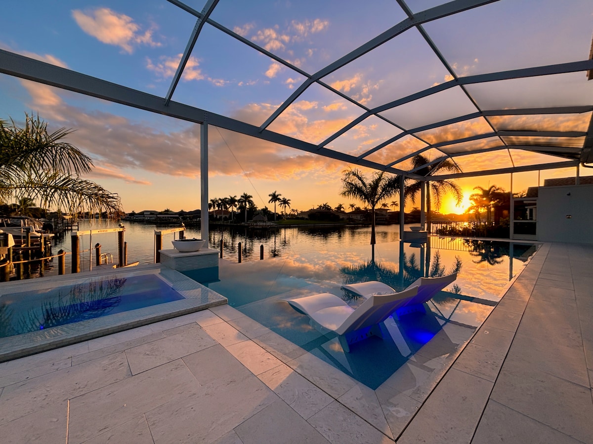 Welcome to "Villa Indian Summer," a modern, two-story newly built home nestled in the highly sought-after Southwest of Cape Coral. This exquisite vacation villa boasts an unparalleled southern panoramic location with captivating views of intersecting canals. The prime location ensures effortless access to everyday conveniences. Essential shopping – groceries, pharmacy, postal services, etc. – can be found less than two miles away at the Camelot Isles Shopping Plaza.